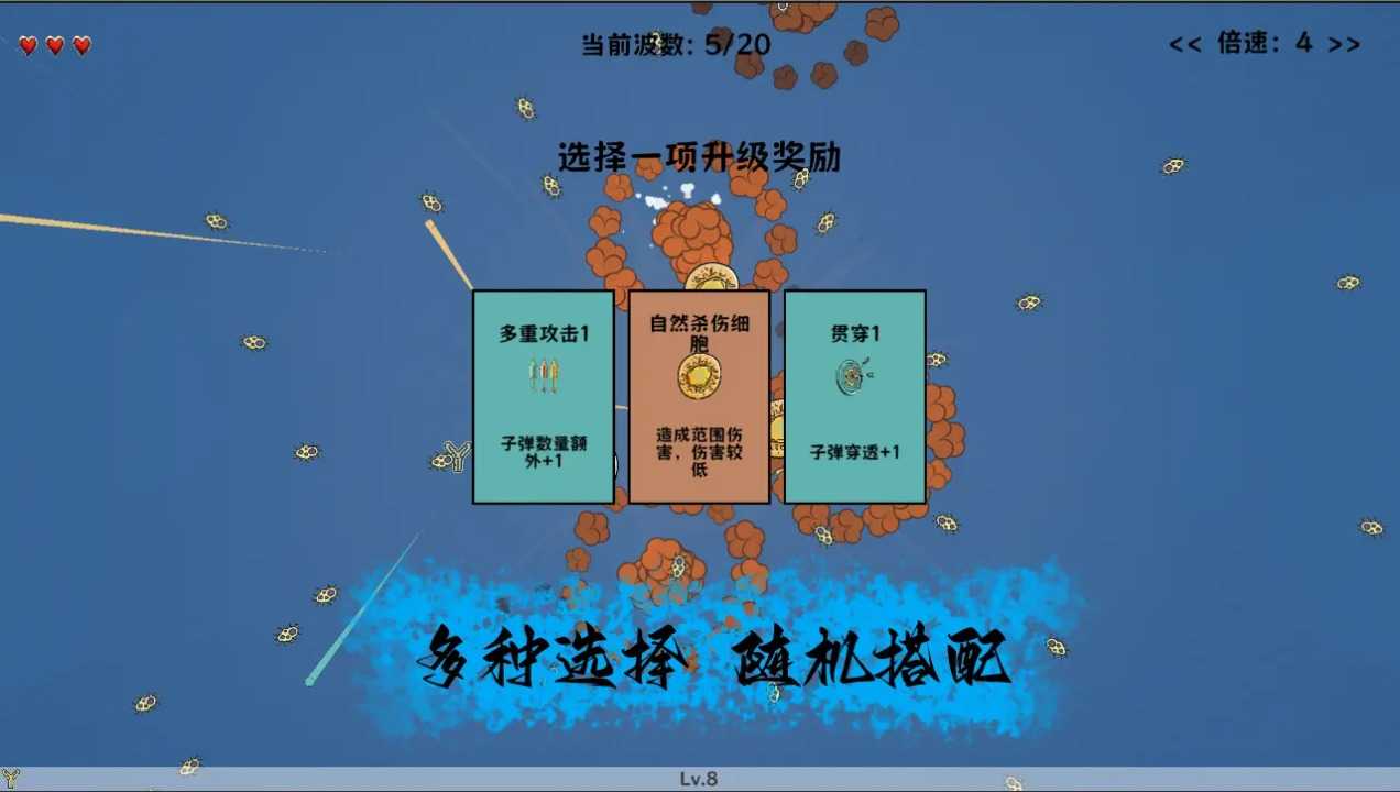 不断击败敌人,提升免疫细胞能力,大大提高防御能力