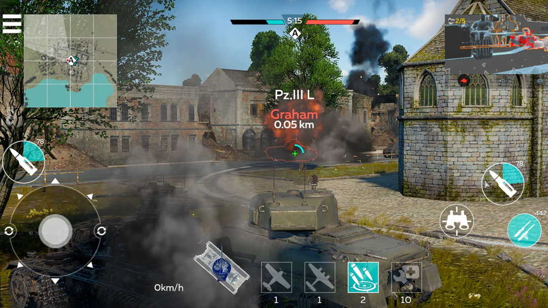 2、驾驶坦克在战场上自由射击,你必须快速锁定敌人的位置,准确地射击和杀死更多的敌人。