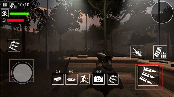 2、进入游戏,通过滑动左轮来控制位置,右边控制角色的武器和射击