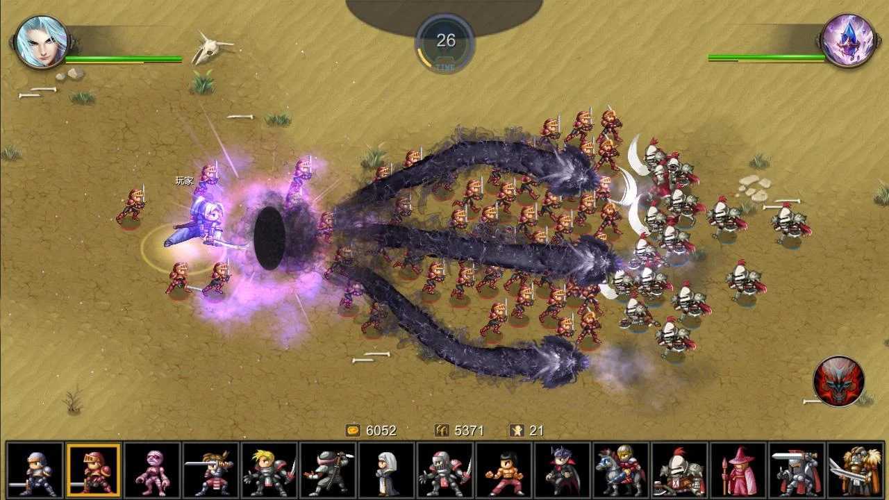新兵、老兵、僵尸是第一轮最实惠的人选,因为钱少,只能派兵及以下。建议派僵尸,因为僵尸攻击高,血厚,成本低,前期挺有用的。最好不要造老兵,不如新兵(人太少,会被新兵虐待)。所以一直派僵尸。三次以后。派剑士(僵尸后两位),这个时候钱多了。派忍者或铁凯飞将(忍者后面的两个),建议派铁凯飞将(他的血比僵尸厚),但忍者是绝地反击的最佳候选人,忍者的速度仅次于骑兵,可以立即转移战场。
