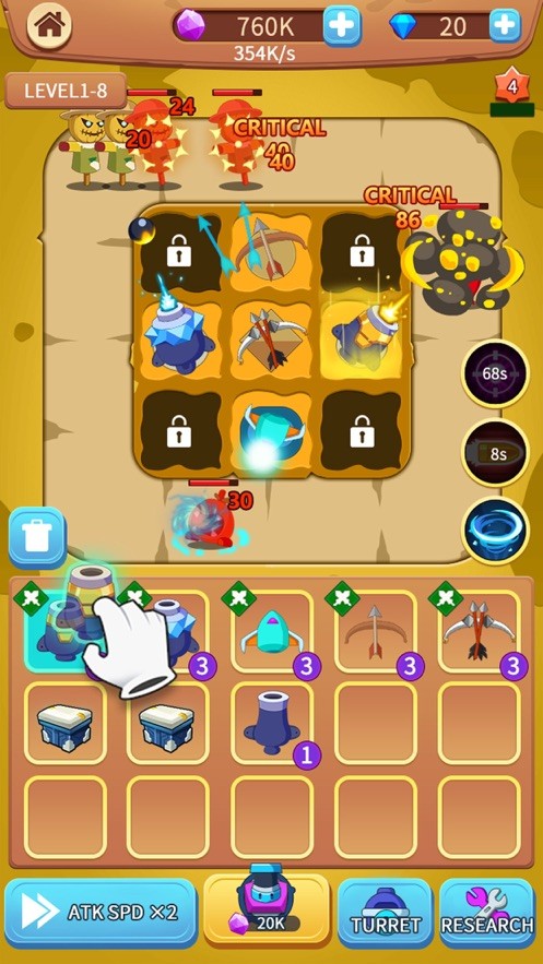 2. 升级合成你的炮塔防御非常方便,游戏可玩性大大提高,玩家粘性强。