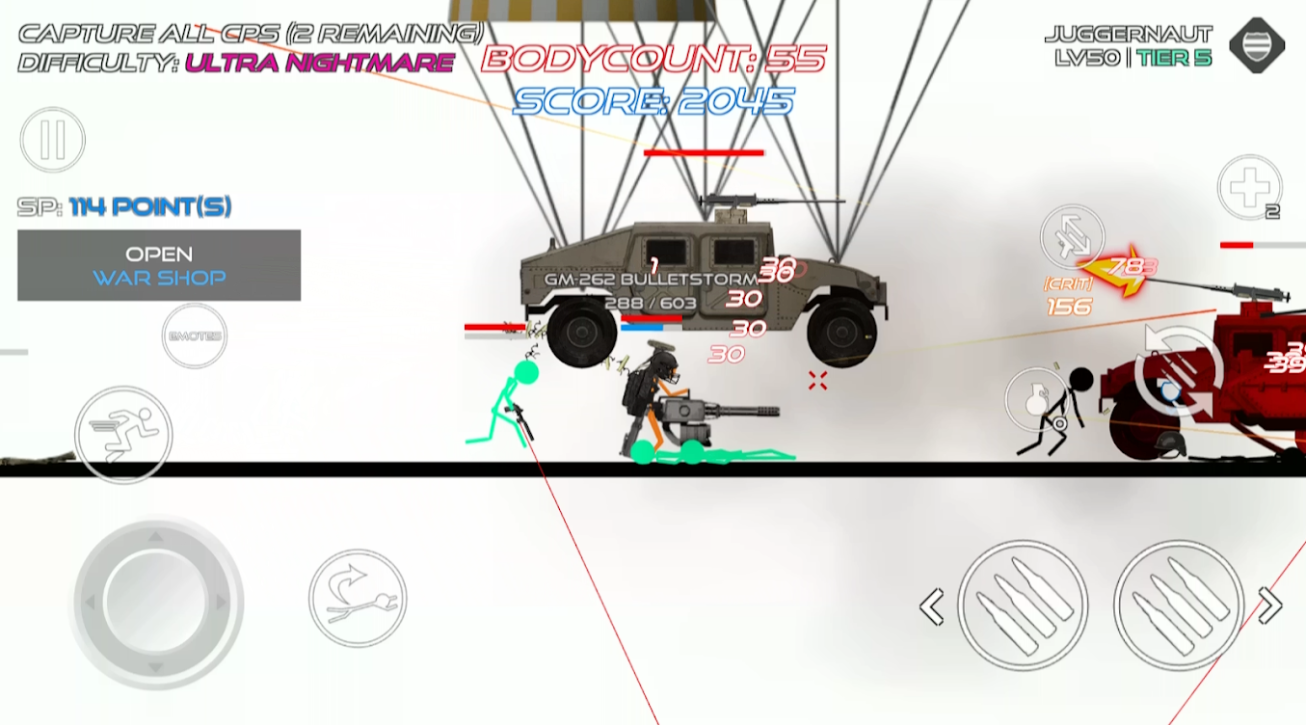 火柴人战争血击是一款火柴人现代战争射击游戏,拥有150多种独特的武器和36种独特有用的战斗技能,通过战斗提高角色的战斗能力,流畅的游戏画面给玩家带来真正的打击感。