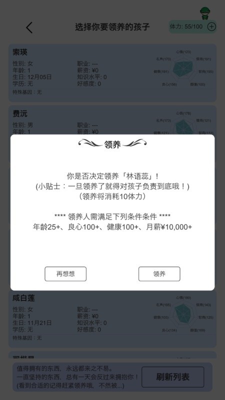 模拟人生路是一款休闲模拟类手游,在游戏中你将体验各个年龄段所要经历的事情,从出生开始发生的所有事情都将在游戏中完成,人物角色也要玩家通过完成任务才能解锁,在虚拟的世界中,你会有前所未有的人生。给你一个