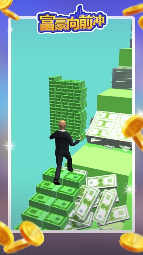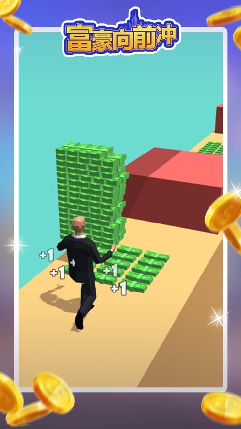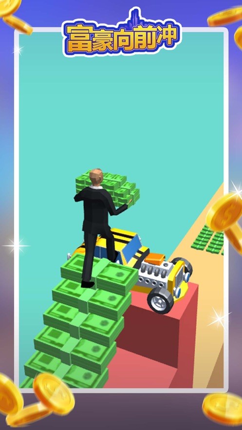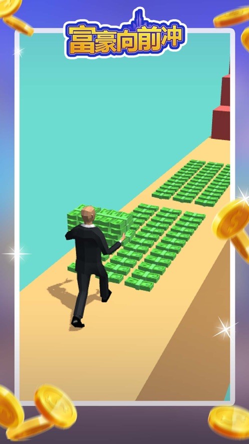 富豪向前冲是一款非常轻松有意思的动作闯关类手机游戏,在这里玩家会扮演一位富豪,在有着各种障碍物的道路上闯关,这些障碍物碰到的话就会宣告游戏失败,而你需要在避免这些障碍物的同时,收集路途中所有能够看得见