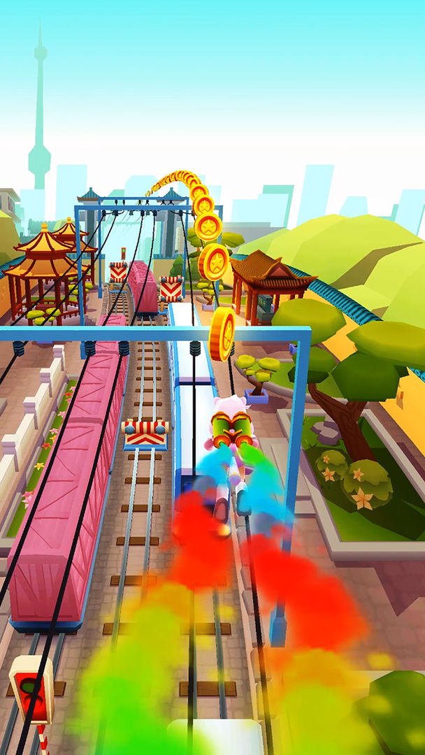气垫滑板:双击屏幕启动滑板道具。如果角色撞到障碍物或火车游戏而不启动滑板功能,则结束。在滑板状态下,这相当于为角色购买保险。当滑板撞到障碍物时,滑板会消失,但游戏可以继续进行。滑板在消失后几秒钟内有冷却时间。闪烁后,可双击重新启动,无次数限制。