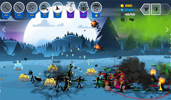 4、利用个性化的皮肤工具来提高火柴人的能力,分配金币,合理分配火柴人,将会更好地获胜。