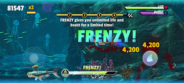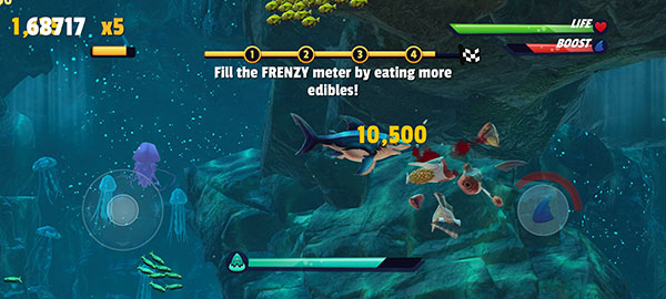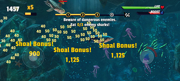 2、然后用虚拟按钮操作鲨鱼,右鳍可以加速。