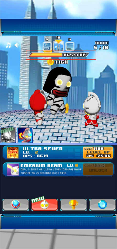 5、顶部是奥特曼需要保护的城市,在击败城市的怪物后,可以去下一个城市与怪物作战;