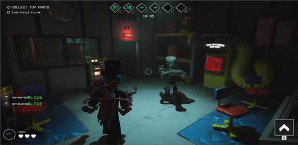 在游戏中,玩家将处于第一人称探索模式,共有7位玩家,而在这七位玩家中,有一名玩家会挑选为怪物,六位玩家当成幸存者,当然玩家也可以自行选择幸存者还是怪物阵容。幸存者的任务是通过解谜来获得玩具部件,并把它放在玩具机里,合成巨大玩具搬到火车上逃离,而怪物的任务是把所有玩家给击倒就可赢得胜利!游戏过程会伴随着非常低沉且恐怖的音乐,可以给玩家很好的游戏体验感。