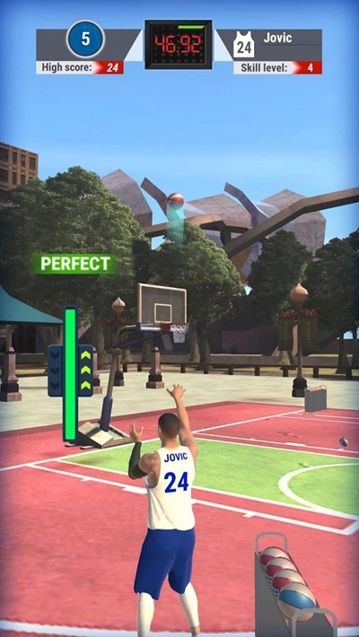 三分球大赛是一款非常好玩有趣的休闲益智类游戏,游戏中,你将会来参加一个三分球大赛,根据不同的位置看,选择最佳的角度,同时力道的控制与出手的时机是决定着能够进球的关键,你进的球越多,你得到的分数也就越多,只有达到一定的分数才可以顺利的通关游戏,游戏的关卡模式是非常多样的,玩家可以尽情的选择。