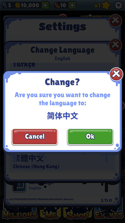 4、最后点击ok,将地铁跑酷沙漏版的语言成中文成功调整。