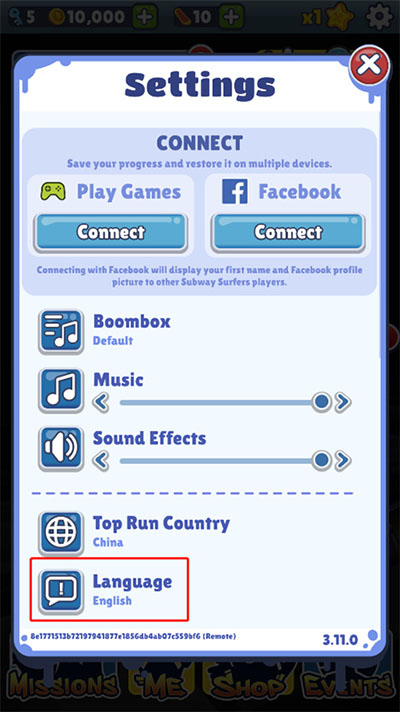 如何设置地铁跑酷沙漏金币中文?