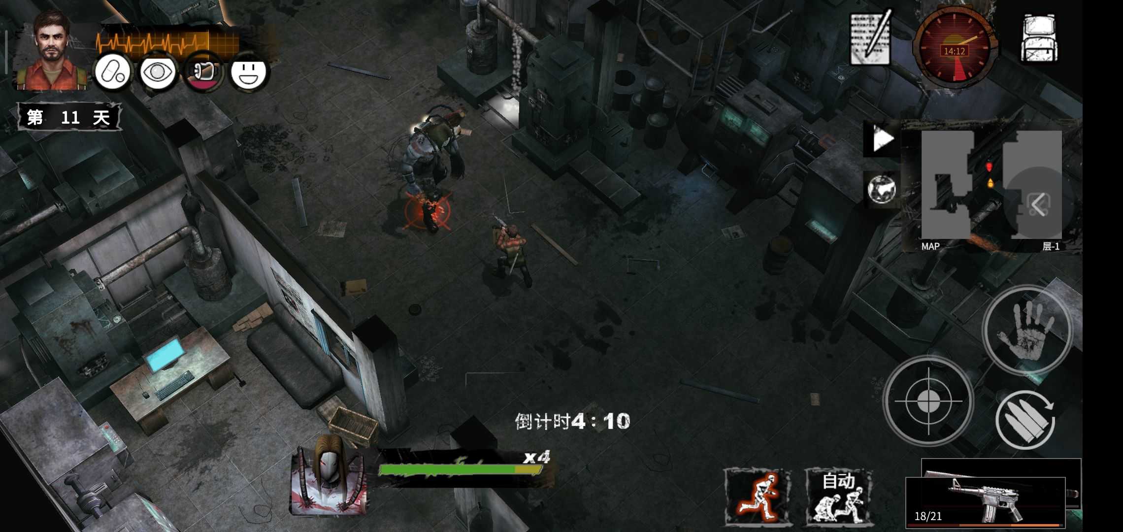 游戏中的潜行是一个非常重要的概念。当角色听到僵尸的动作时,他们会自动进入潜行状态。如果周围没有僵尸活动,他们会自动进入跑步状态。所有的战斗都会消耗相应的物品和道具,因此如何有效地消耗道具并产生更大的效果已成为这一部分的核心乐趣。