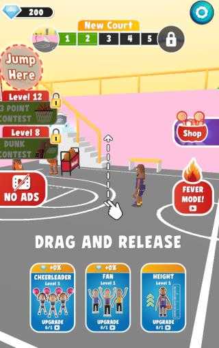 3、非常休闲有趣的玩法,以你喜欢的姿势,完成各种有趣的扣篮表演;