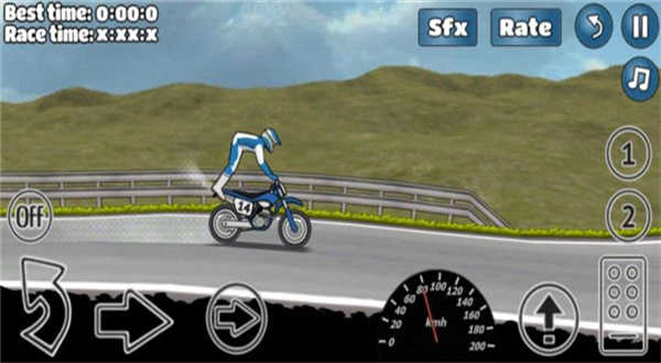 1、操作方法:触摸屏使摩托车前轮离地,保持平衡,尽可能保持单轮行驶。