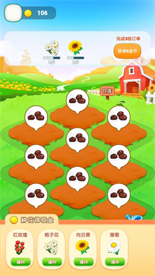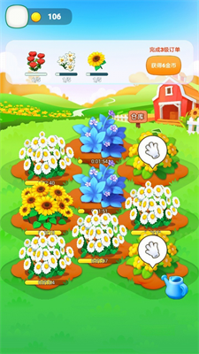 在花园里种各种各样的花,完成订单任务,并获得相应的红包奖励。