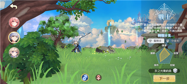 3、进入游戏后,选择角色,输入角色名称,选择性别“下一步”,但这个角色分为两部分“弓手”、“战士”、“法师”。