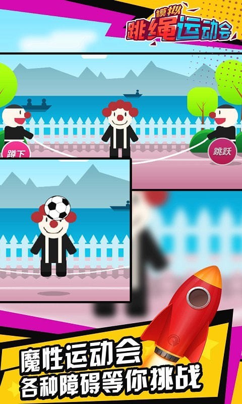 2、魔术小人玩家在游戏中需要控制他,帮助他在运动会上跳绳,完成更多的关卡;