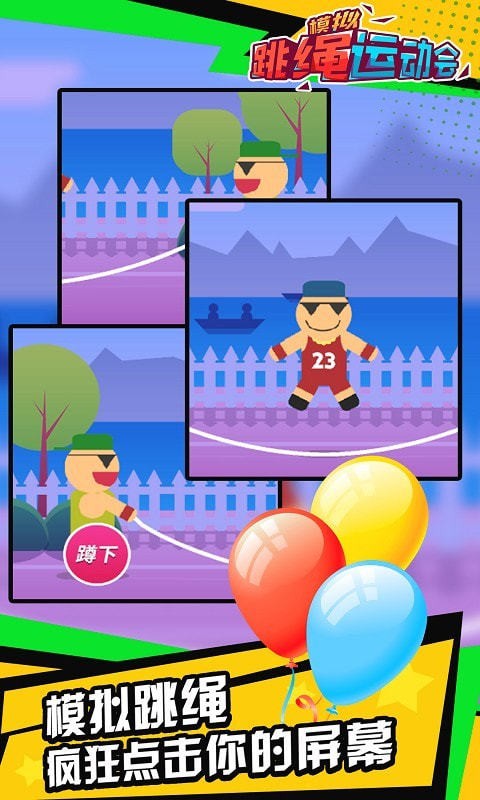 模拟跳绳运动会是一款非常经典有趣的体育动作类手游,游戏整体采用卡通风格。游戏的操作方式十分简单,玩家仅需要点击屏幕控制游戏内的小人跳绳即可。游戏中还有着不同的人物皮肤。每个关卡都会有着不同的任务目标,