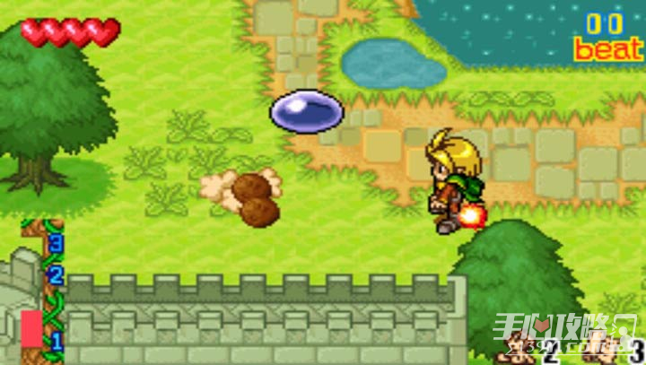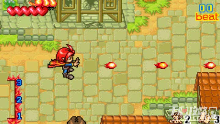 一开始拥有火,冰,地3个属性的元素,装备不同的属性,行进速度也不同冰>火>土,使用装备某种元素,打倒敌兵掉出的宝石可以增加左边的蓄力槽各个属性的特殊作用:火属性可以击破石头堆,冰属性可以在水面上搭路,地属性可以推动机关。