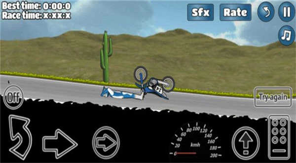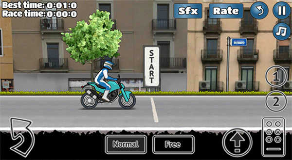 操作摩托车:玩家需要滑动手指,操作摩托车前进、后退、跳跃等,以完成各种特技挑战。