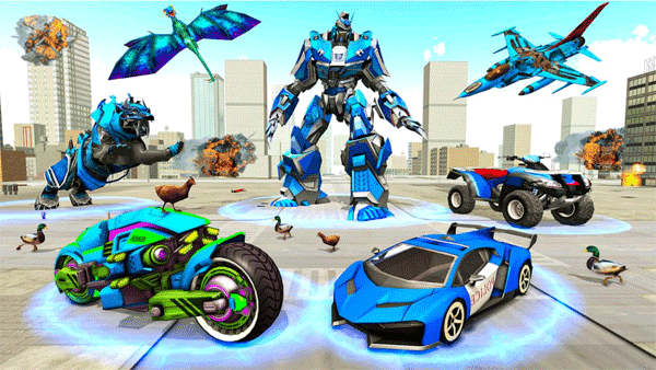 3、丰富的恐龙机器人,你的任务是防止恐龙破坏城市,并在击败恐龙后获得强大的武器和奖励。