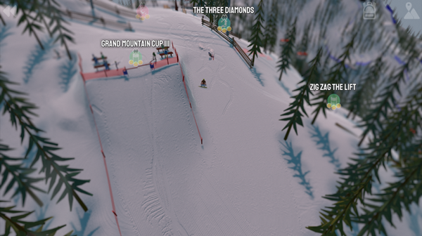 轻松的比赛氛围和简单的操作,通过训练模式提高你的滑雪技能。
