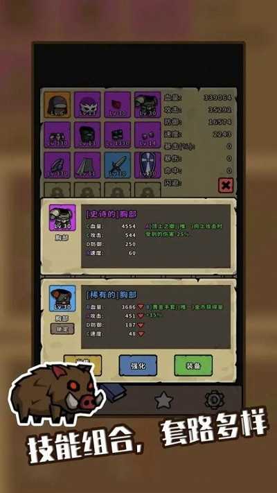 游戏中有很多种装备可以使用,每种装备都有不同的属性,玩家可以根据自己的需要进行选择和升级。