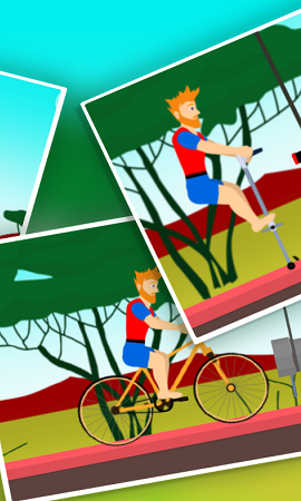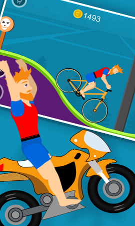 3、玩家可以开自己的自行车,用不同的道具闯关;
