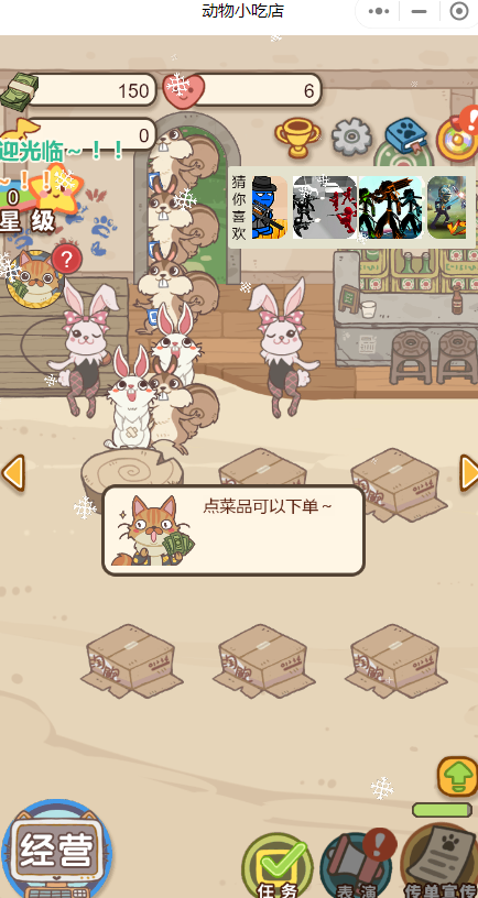 3.游戏将升级菜肴,搭建专属舞台,不断升级服务,满足动物客户的需求