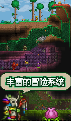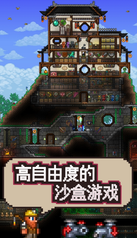 泰拉瑞亚中文翻译版是一款沙盒类游戏,泰拉瑞亚中文翻译版延续泰拉瑞亚原版经典生存沙盒玩法,玩家依旧需要不断提升自己实力击杀游戏中所有boss,这里面所有一切都是可破坏的,然后就可以得到各种强力资源创造专