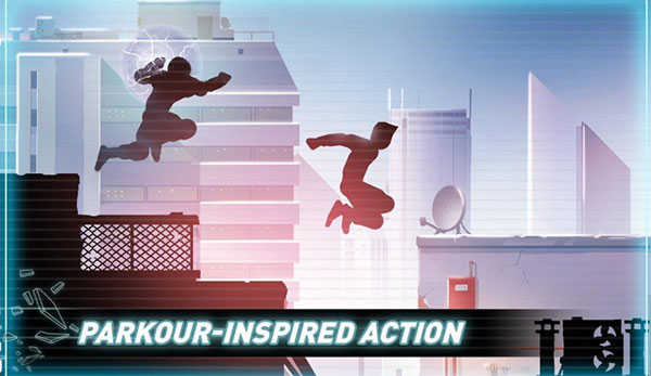 6、游戏将角色弱化成黑色阴影,让你的注意力集中在跑酷上;