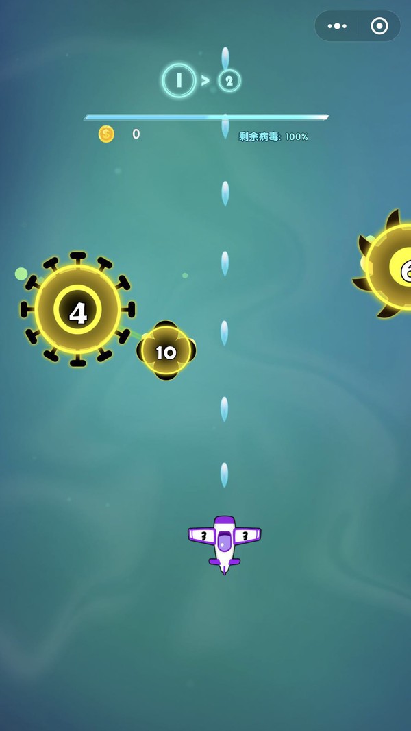 3、只需点击自己的飞机,左右移动射击面前的病毒圈即可。