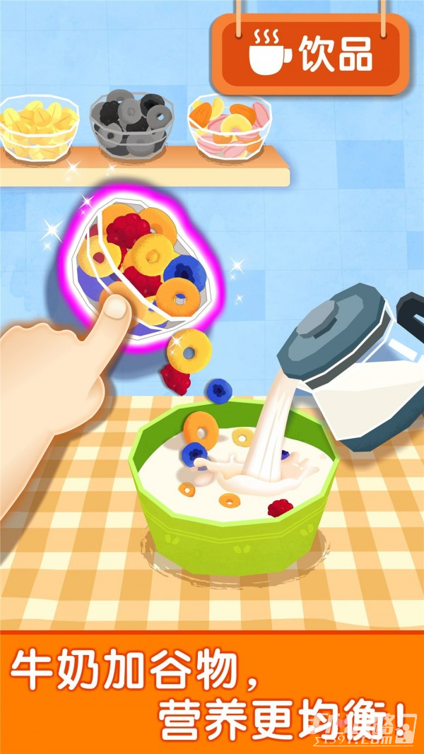 3、这款心爱的卡通游戏让宝宝亲身体验当摊主卖早餐的感觉,既有趣又有现实意义。在婴儿早餐车中,小玩家应该从早期制造开始,并根据不同层次的不同使命逐一完成。各种专业道具会告诉你如何使用它们,让你成为厨师级的厨师
