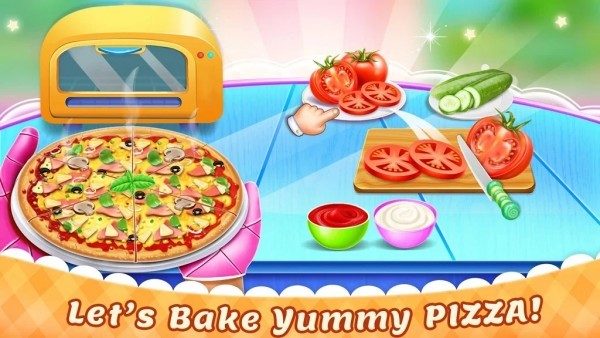 3、趣味无比的美食游戏,宝宝游戏的美食餐厅,制作各种食物进行品尝,每种披萨都是不同的口味。
