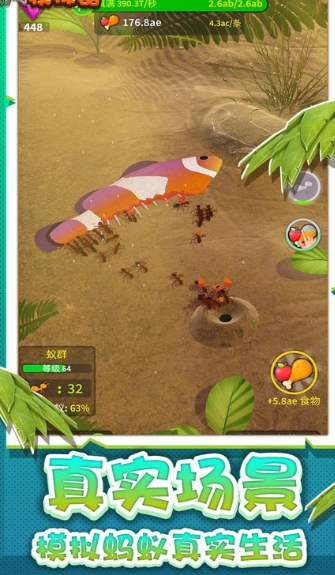 1.着非常有趣的丰富的玩法,以上帝的视角操控蚂蚁进行活动