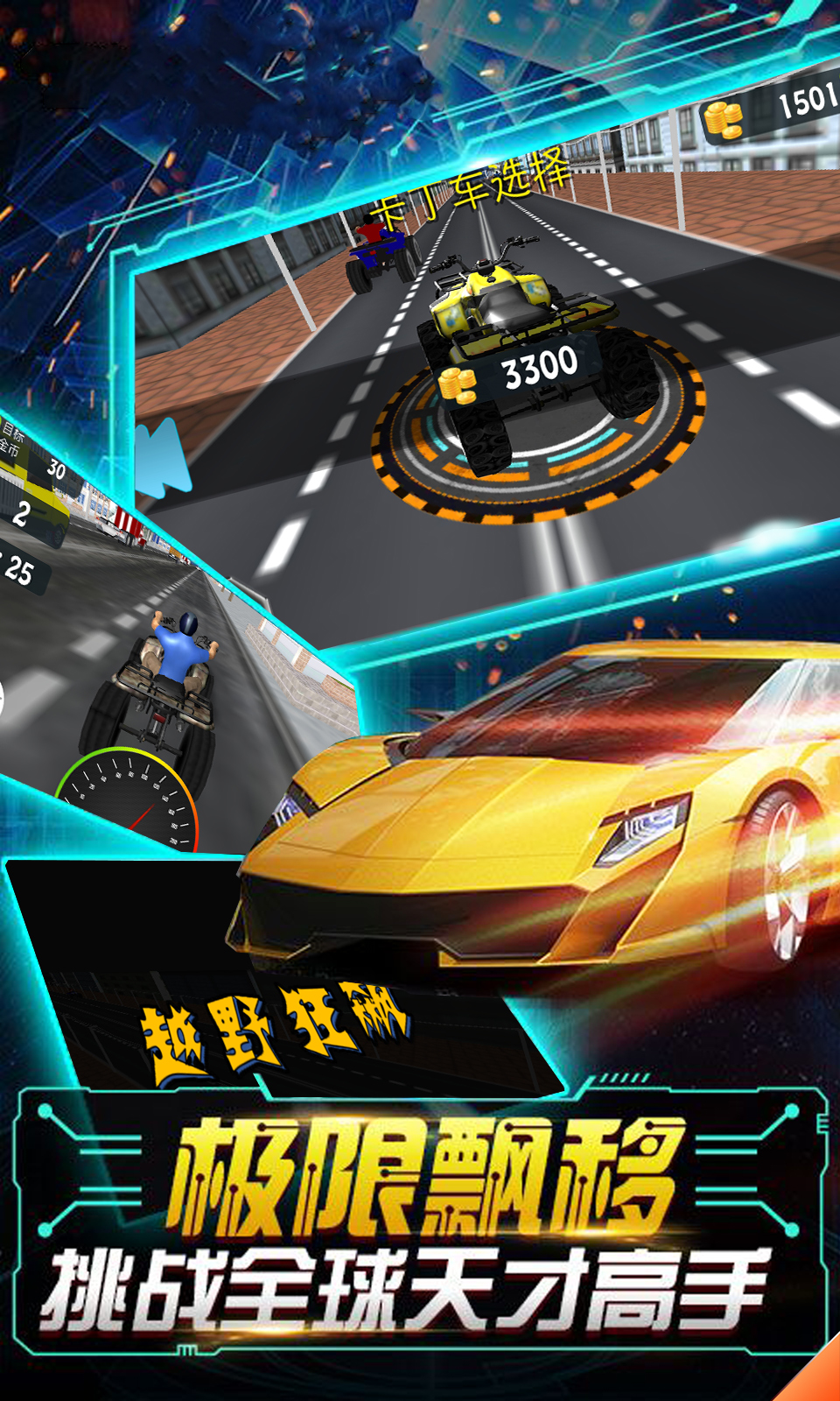 越野狂飙是一以越野车为主题的模拟驾驶类游戏,玩家通常需要驾驶各种车辆在不同的地形中穿越障碍、攀爬坡道、越过泥泞的路面等。游戏通常提供多种不同的车型,例如越野车、卡车、拖拉机等等,使得玩家可以根据自己的喜好和地形需要进行选择。 在游戏中,玩家需要充分发挥自己的驾驶技巧,合理利用油门、刹车、差速锁等设备,将车辆带过各种复杂的路况和障碍。