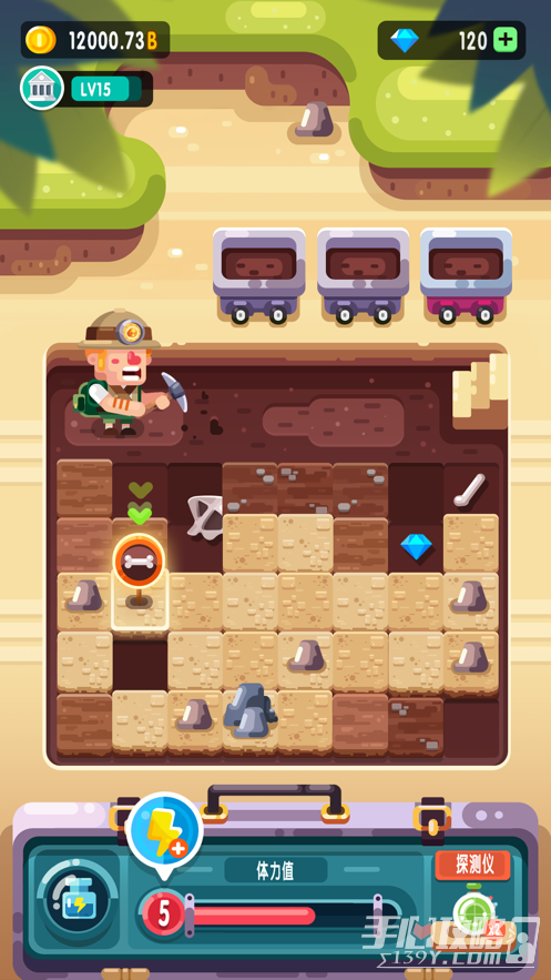 在游戏中,为了复兴寒冷的博物馆,玩家有必要探索恐龙化石来展示它们。只需支付金币到挖掘现场,您就可以触摸地图上的图片进行挖掘。虽然游戏中没有 GAME OVER 但是发掘资金会越来越少。和实际的考古学一样,很难。