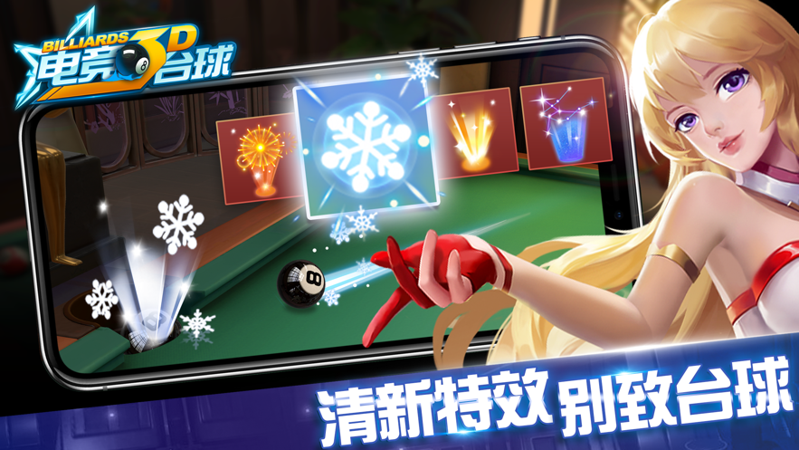 快乐游戏3d电竞台球游戏是一款非常有趣的台球游戏,在游戏中玩家作为专业的台球运动员将有机会去挑战各种世界上一流的职业球手,通过自己的真实水平来征服你的对手和现场以及电视机前的所有观众,在成为顶尖球手的路上又迈出了一步。