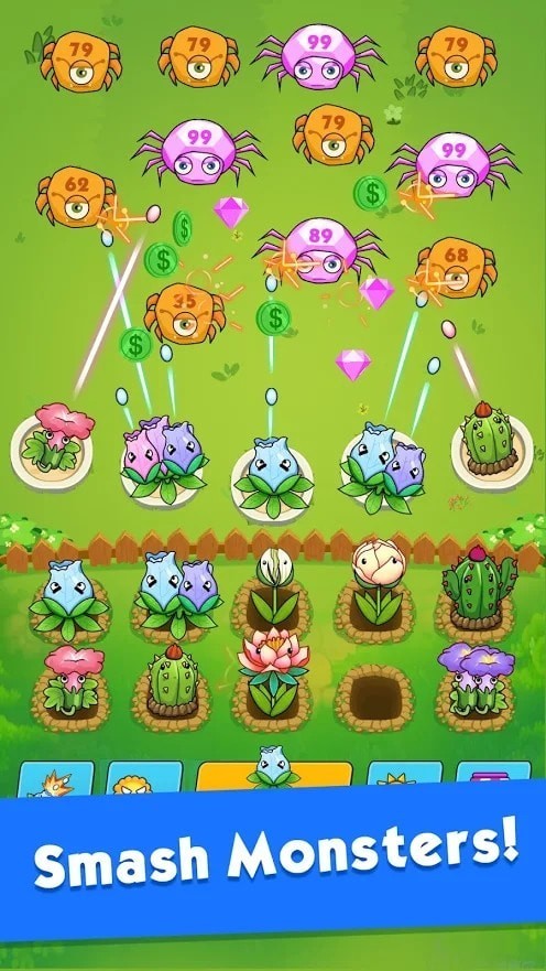 幸运花园粉碎怪物是一款非常有趣的塔防策略手游,游戏有着极为细腻的游戏画面。在幸运花园粉碎怪物游戏中,玩家需要在关卡内种植各种各样不同的植物来抵御蜘蛛的攻击,游戏中为玩家提供了多种不同种类的植物,每个植