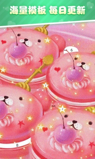 1、每一张图片都会有不同的数字方便你来涂色,我们仔细分辨出不同的颜色,在这里进行涂色;