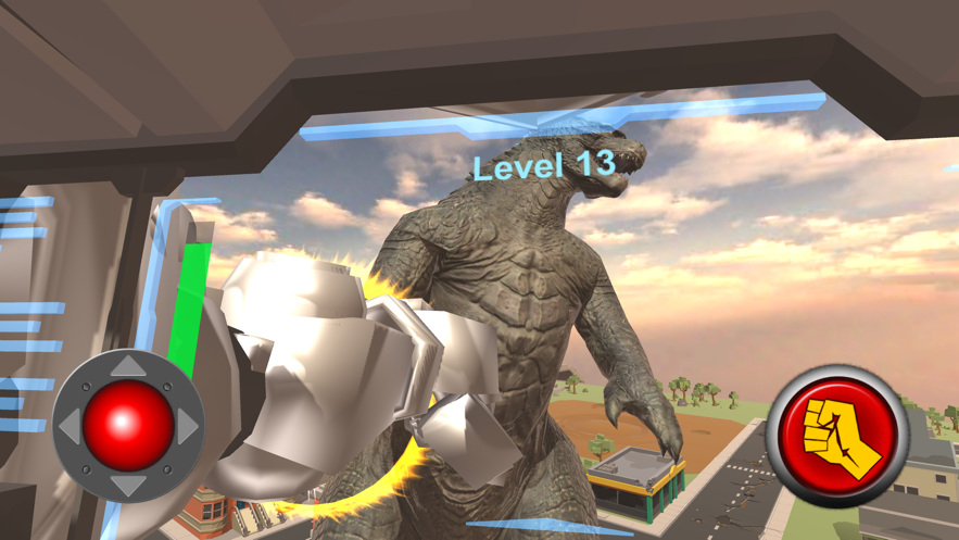 3.点击屏幕左右下方的按钮,控制机械哥斯拉。