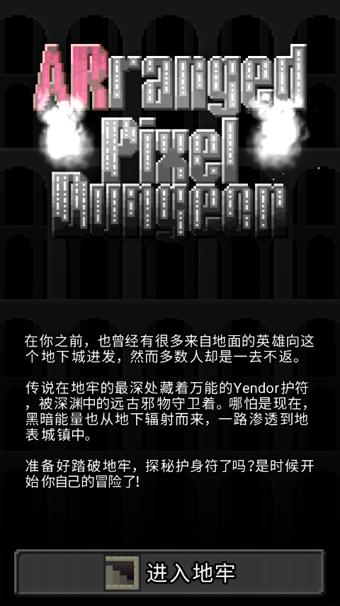 1、首先打开我们下载的像素地牢手机游戏,直接开始游戏,因为版本有自己的中文字幕,没有太多复杂的设置操作。
