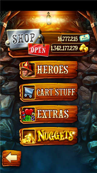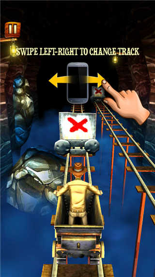 1、你能在轨道上骑一辆小矿车跑多久?滑动手指,让小矿车跳起来,收集更多的宝藏。