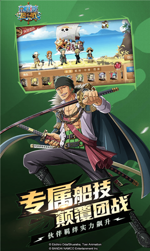 一款以100%动画剧情还原为主,激战海盗王新世界的游戏。