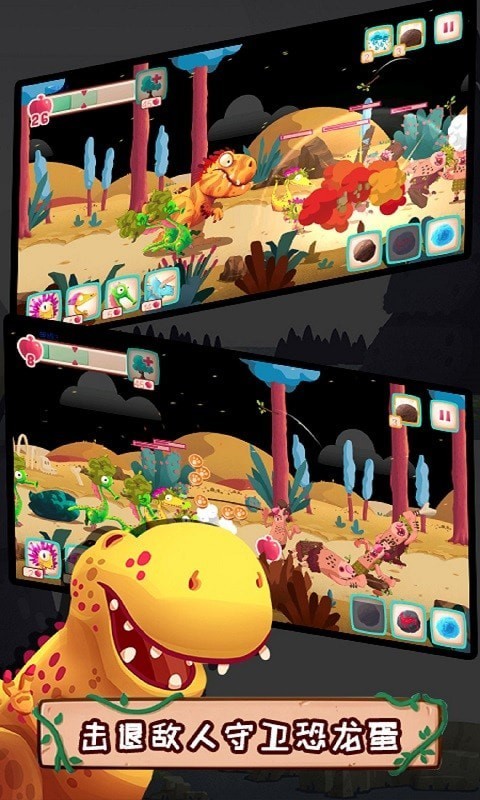 2、在这个过程中,控制各种恐龙,防止敌人攻击,消灭所有敌人,保护你的宝宝;