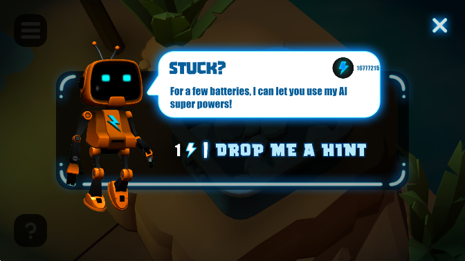 2.找到隐藏在各种奇怪位置的电池,给小机器人充电。如果你找不到一切,或者是时候结束游戏了