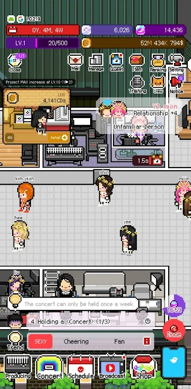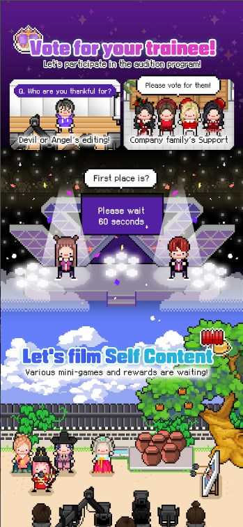 Monthly Entertainment是一款偶像文化为主题的模拟游戏。玩家可以扮演一个偶像团体或个人的经纪人,负责安排和统筹团体或个人的各项活动,包括音乐录制、演出、综艺节目等。游戏画面精美,操作简单易懂,让玩家可以轻松地进行偶像管理和活动安排。游戏内容丰富多样,包括各种类型的活动挑战,如音乐录制品味测试、舞台表演等。玩家可以通过挑战活动不断提升自己和偶像的实力和名气,从而获得更高的游戏成就和奖励。