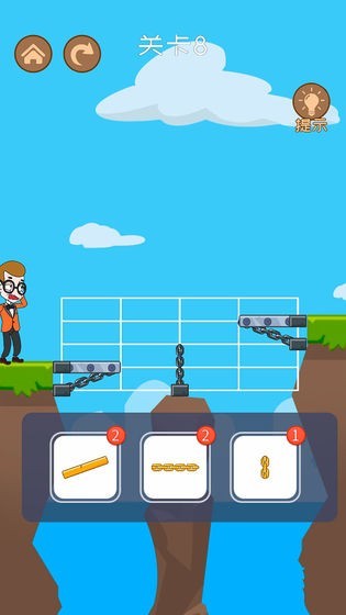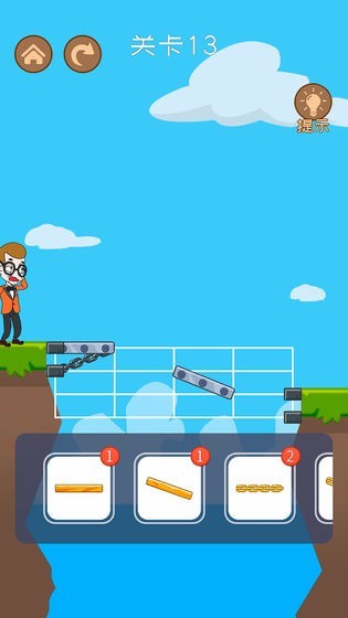 百变马丁大冒险游戏是一款最近在各大网站都十分火热的冒险闯关游戏,在游戏中玩家需要根据系统给的木桩来搭建桥梁,玩家要确保桥梁的结构稳定保证自己上去的时候不会掉下来,帮助马丁去顺利的闯关吧。