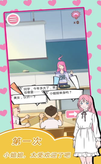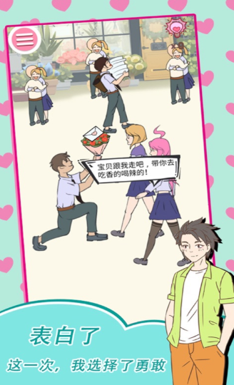1、游戏玩法充满乐趣,带你畅游学校,争当情场专家,英勇表达追女神,勇敢A上去